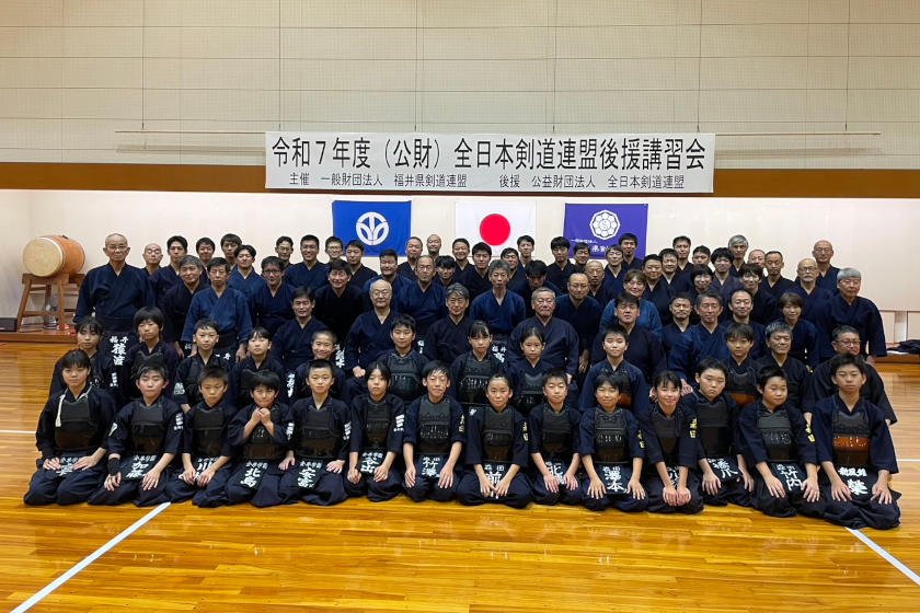 福井県剣道連盟は2025年11月2日(日)、福井県立武道館で、全日本剣道連盟より全剣連試合・審判委員の本名和彦先生(範士八段、茨城県)と安江正紀先生(教士八段、石川県)をお招きし、「令和7年度全日本剣道連盟後援講習会(試合・審判法)」を開催しました。