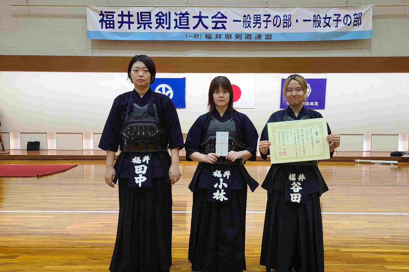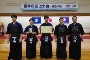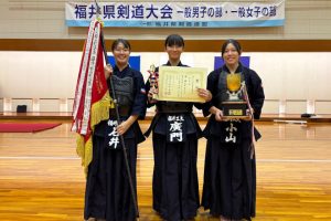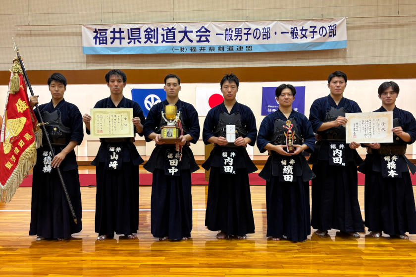 福井県剣道連盟主催(鯖江地区剣道連盟・丹生地区剣道連盟主管)の「第73回福井県剣道大会(一般男女の部)」は2025年9月21日(日)、福井県立武道館で開催しました。各地区剣道連盟、団体から男子の部には13チーム、女子の部には7チームが出場し、熱戦を繰り広げました。男子は福井県警察、女子は福井工業大学が優勝しました。