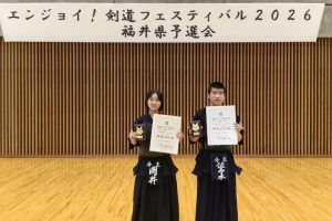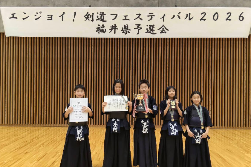 2026年3月27日(金)~29日(日)、富山市で開催される「第48回全国スポーツ少年団剣道交流大会」の本県代表を選出する福井県予選会が2025年11月16日(日)、勝山市体育館ジオアリーナで行われ、小学生団体は今立剣道スポーツ少年団が優勝。個人中学生男子は佐々木海緒選手、同女子では岡井陽菜選手(ともに今立剣道スポーツ少年団)が制し、いずれも全国大会への出場権を獲得しました。