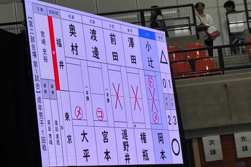 東京の選手は全員剣道界では世界レベルの超スーパースターばかりのオール警視庁チーム、腹を括りました。本県チームは大会前までに滋賀県、広島県、長野県の錬成会に参加して強化しました。今年の成年男子は「次の者に繋ぐ、各ポジションでの役割(任務)を果たす」をテーマに戦術が決まり、その結果チーム力が増し遠征先の練習試合でも大将戦で試合が決まるようになりました。