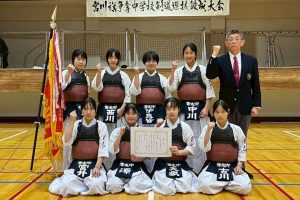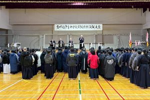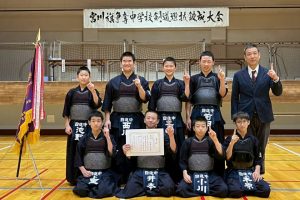 敦賀高校剣道部OB会主催(敦賀高校剣道部育成会共催)、(一財)福井県剣道連盟、敦賀市剣道連盟後援の「第28回宮川旗争奪中学校剣道選抜錬成大会」が2025年12月14日(日)、敦賀市立体育館で開催されました。昨年に引き続き県外の近畿地区・中部地区・北信越地区、関東地区などから19校と県内から13校が参加、コロナ感染予防のガイドラインに沿って実施しました。男子団体では敦賀市剣連チームが3位に入賞しました。